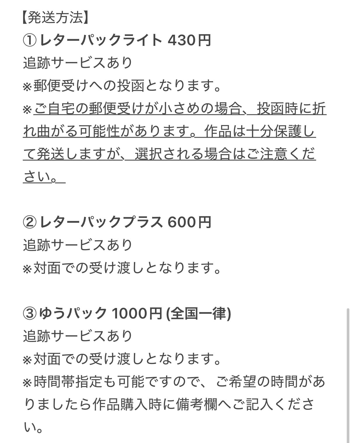 ※ご自宅の郵便受けが小さめの場合、投函時に折れ曲がる可能性があります。作品は十分保護して発送しますが、選択される場合はご注意ください。